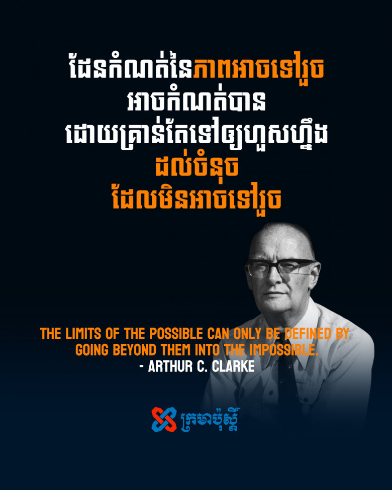 Arthur C. Clarke - The limits of the possible can only be defined by going beyond them into the impossible. Jennah posted on 2 years ago — updated on 2 years ago ខ្លី សង្គម ទស្សនៈ ឃ្លាខ្លី