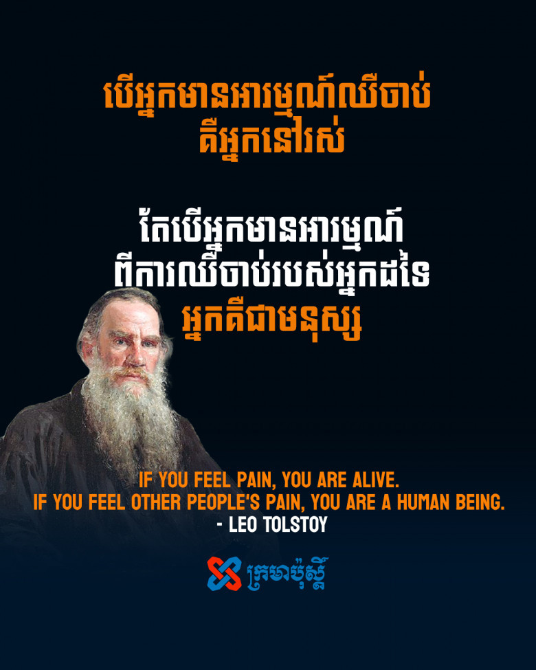 Leo Tolstoy - If you feel other people's pain, you are a human being. Jennah posted on 2 years ago — updated on 2 years ago ខ្លី សង្គម ទស្សនៈ ការឈឺចាប់ អារម្មណ៍